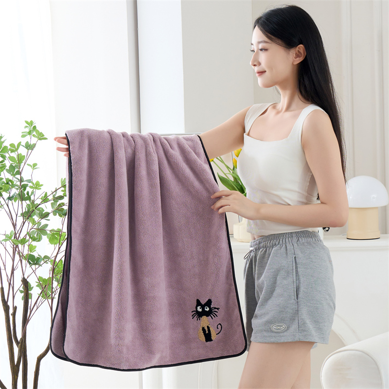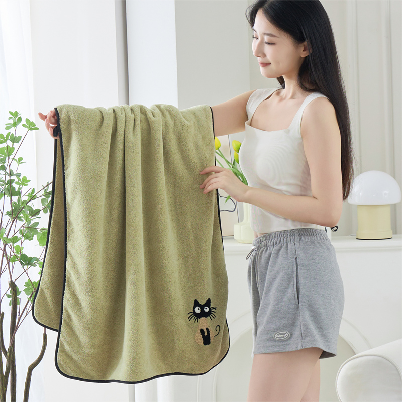 - 2025新品珊瑚绒居家系列-凯特猫套巾 毛巾白