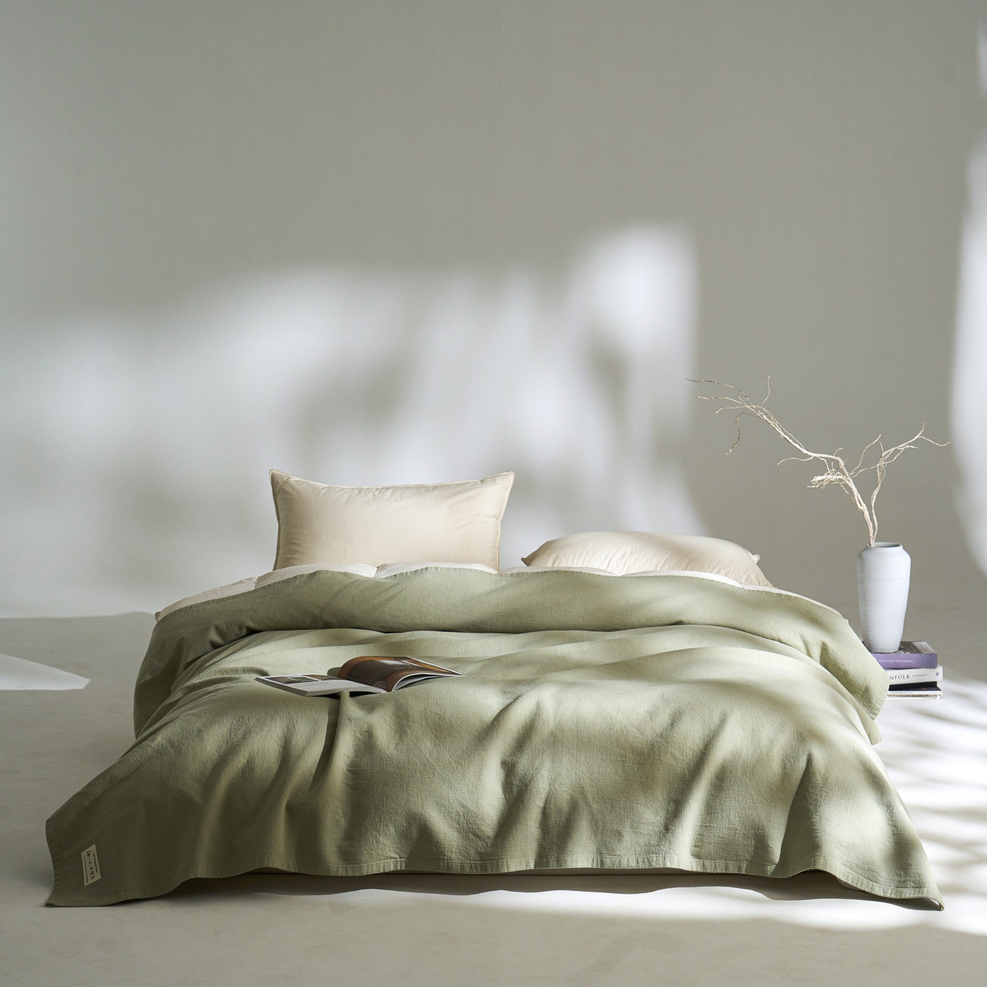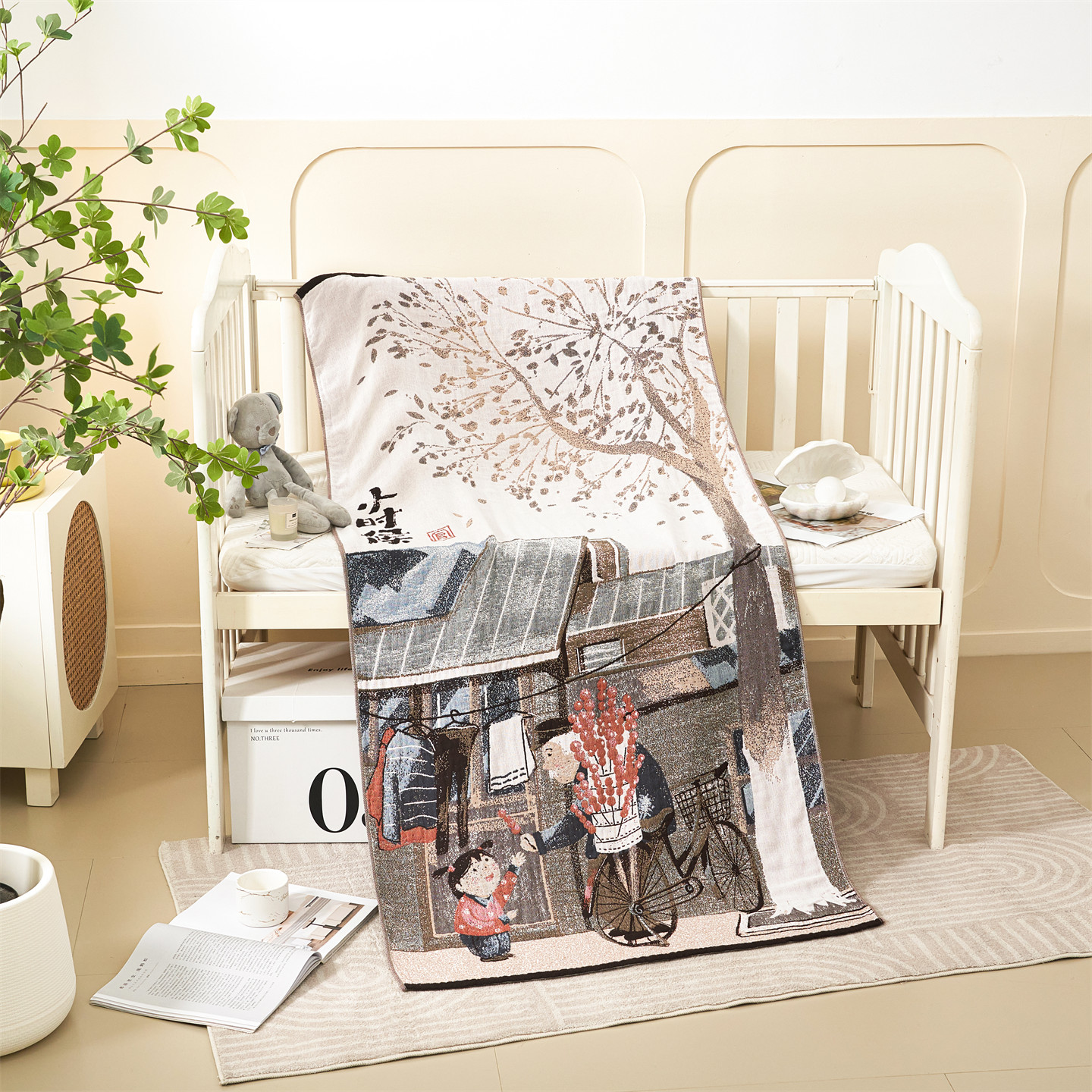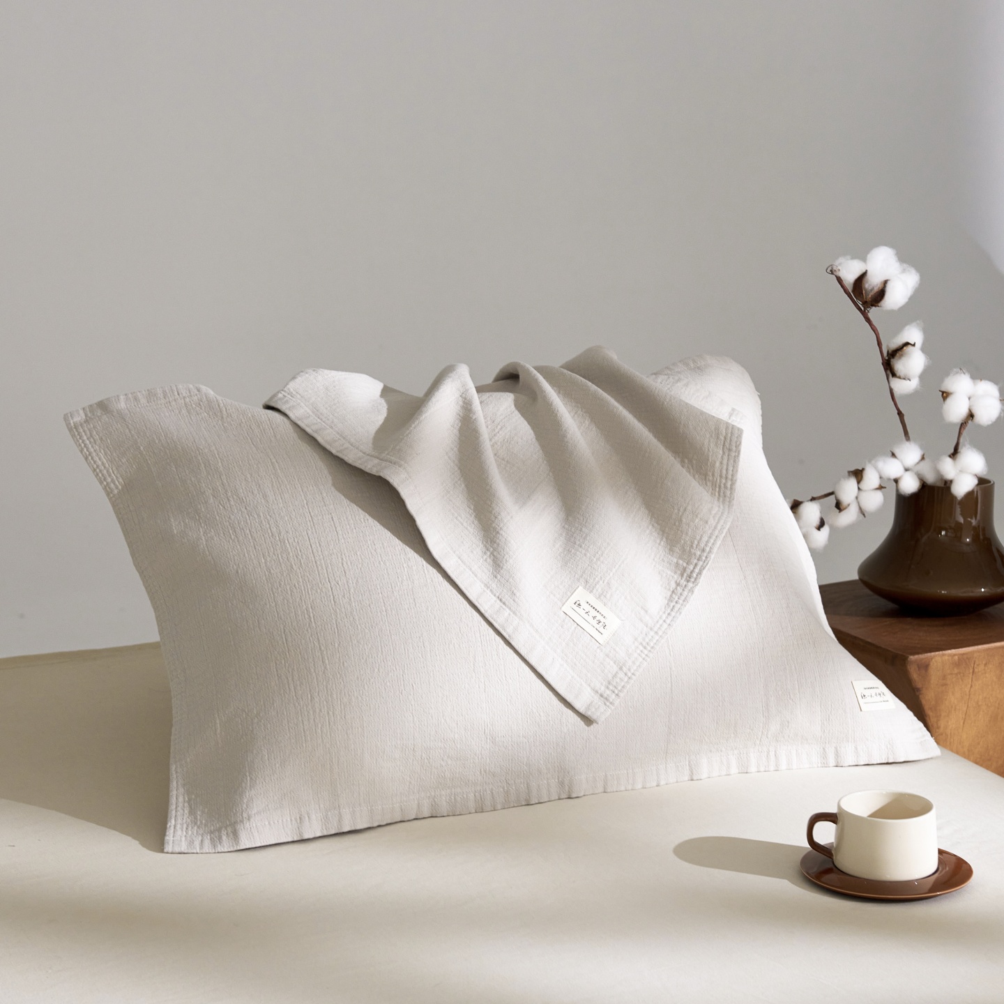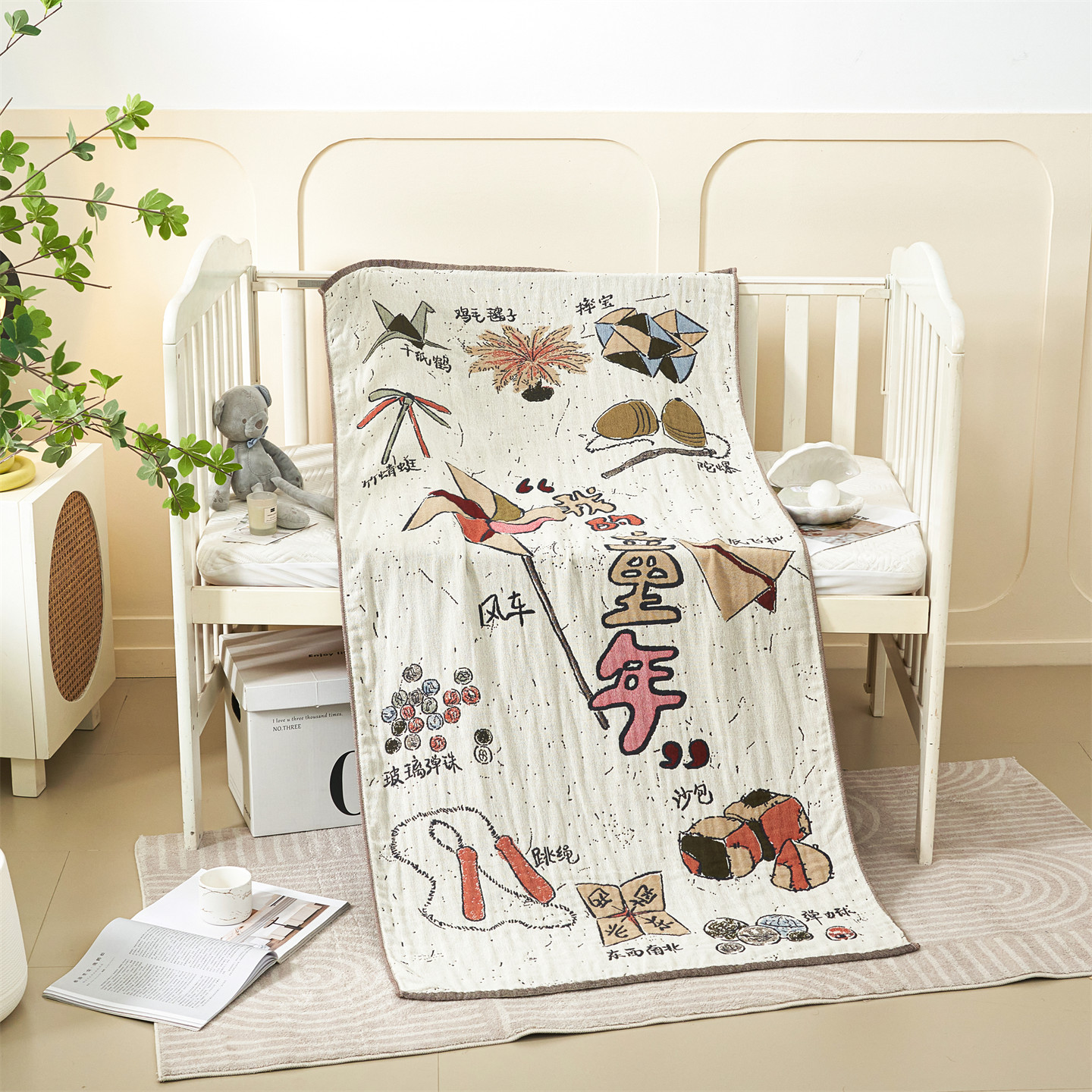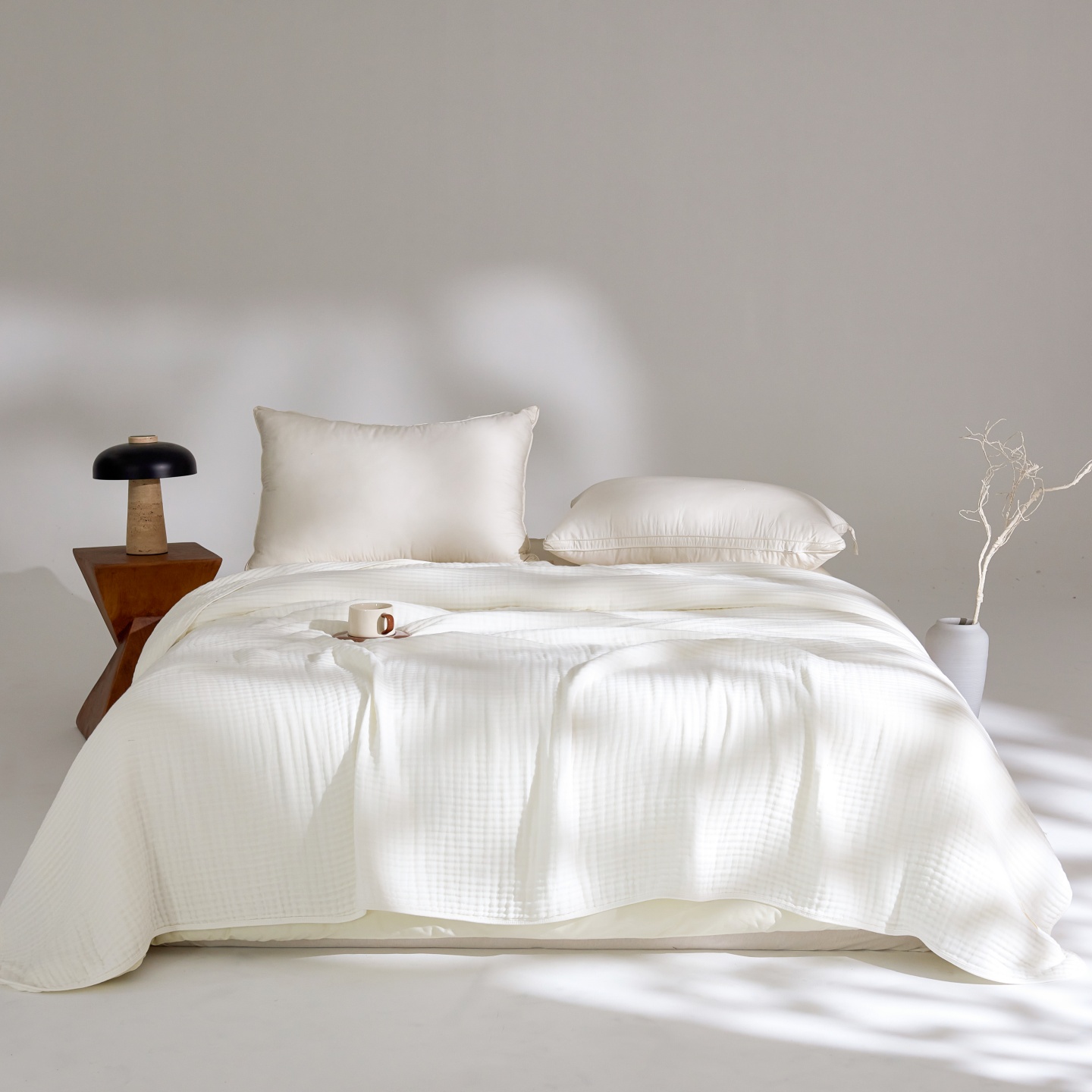 - 2025新款A类全棉日系六层纱布皱皱毯 本白