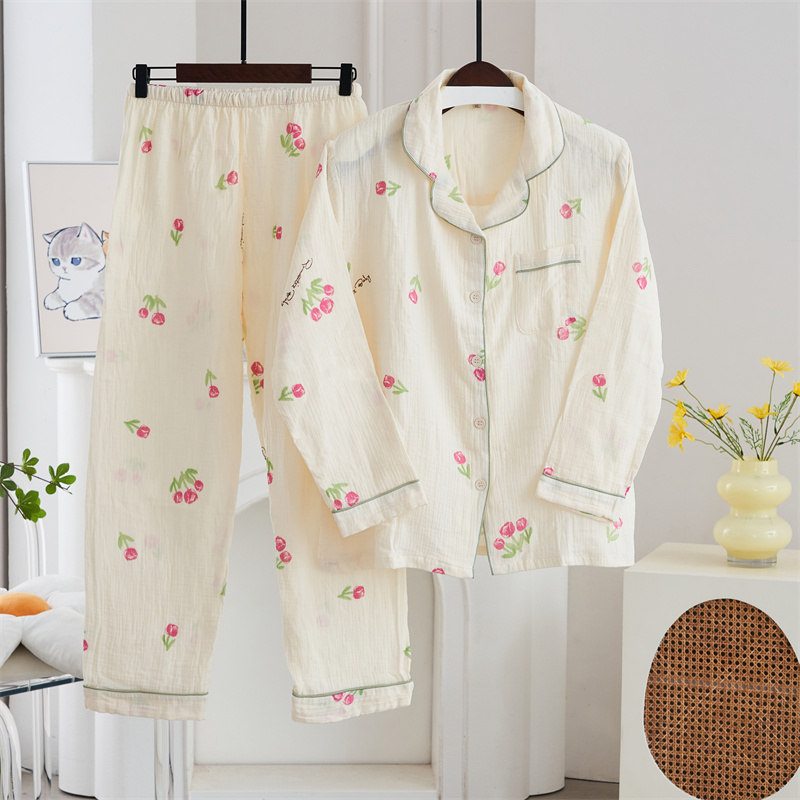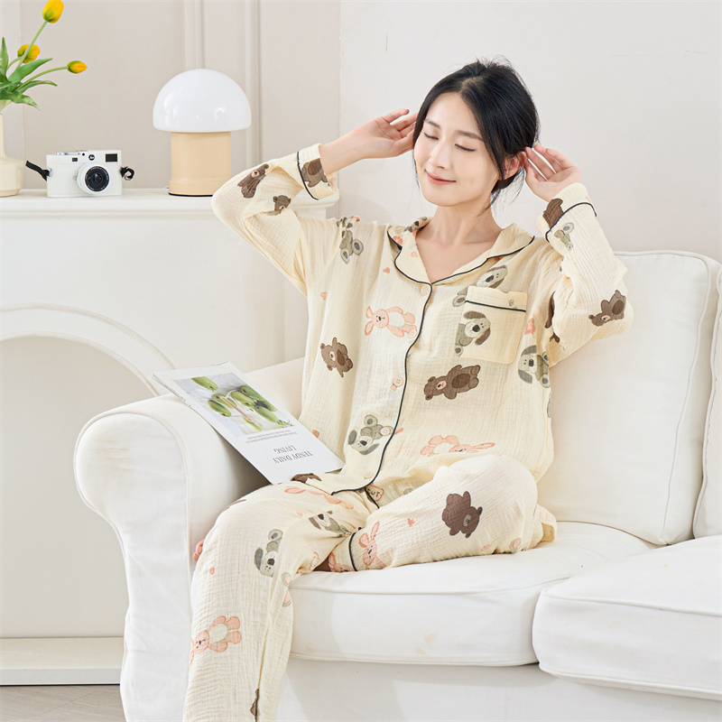 - 2024秋冬新品全棉双层皱皱纱家居服系列-家居服 彩色南瓜