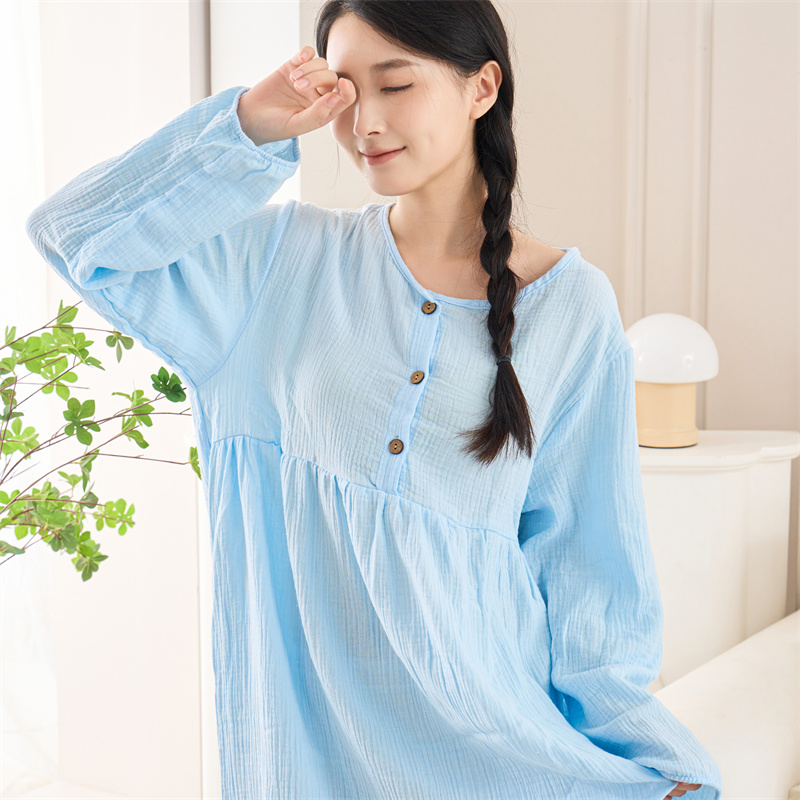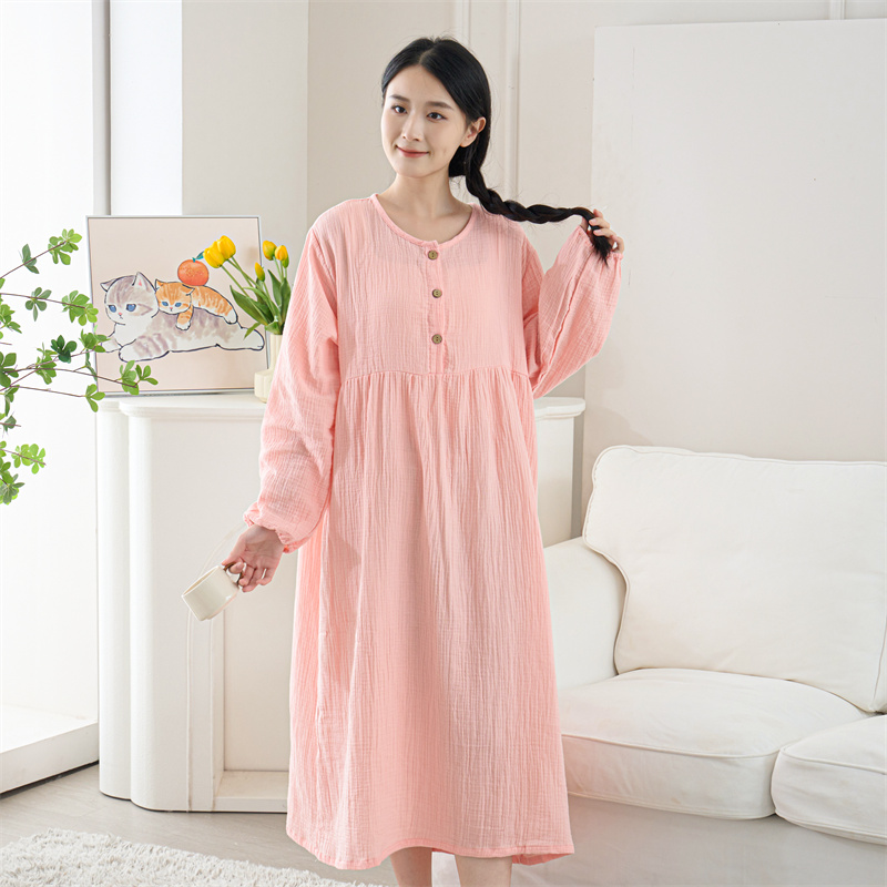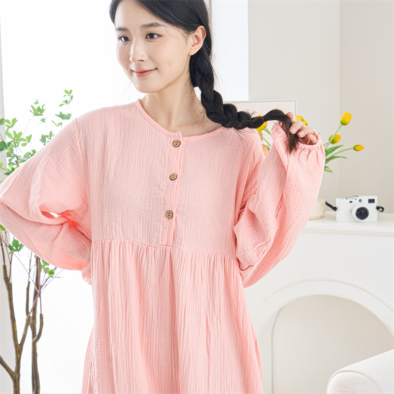 - 2024秋冬新品全棉家居服系列-连衣裙 粉裙子