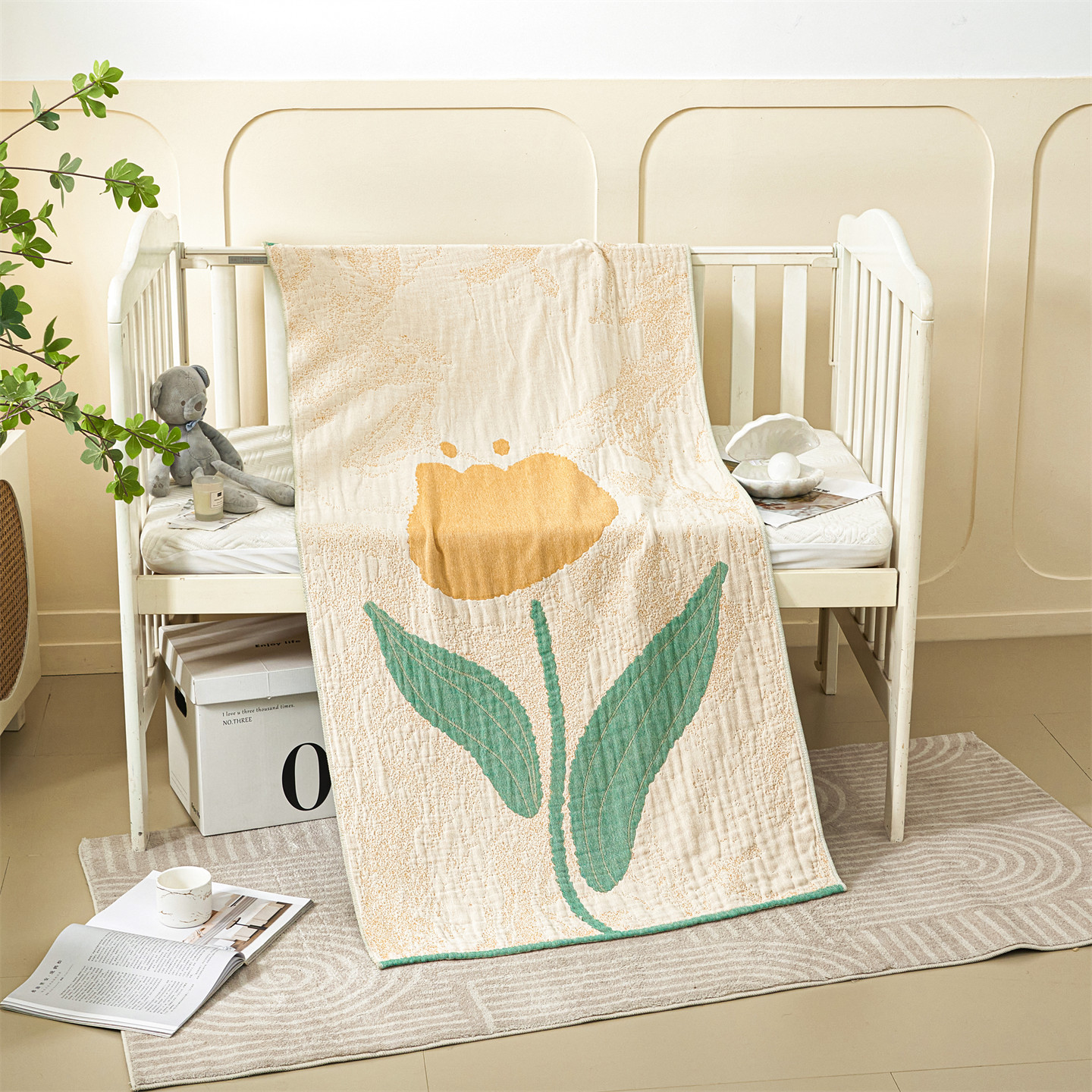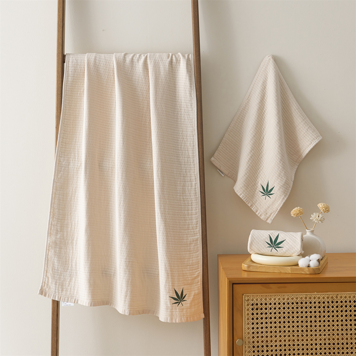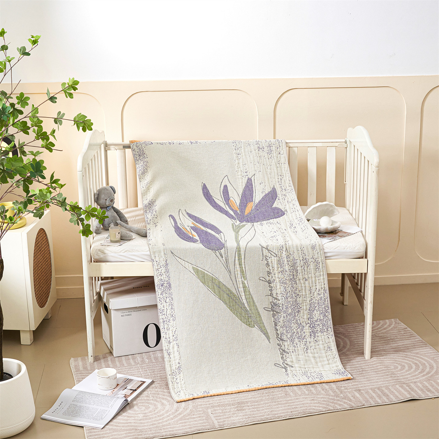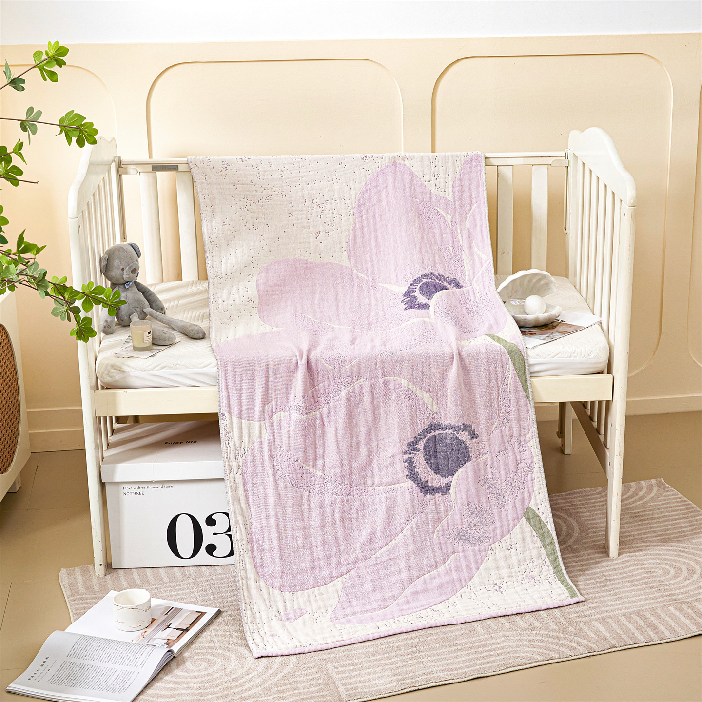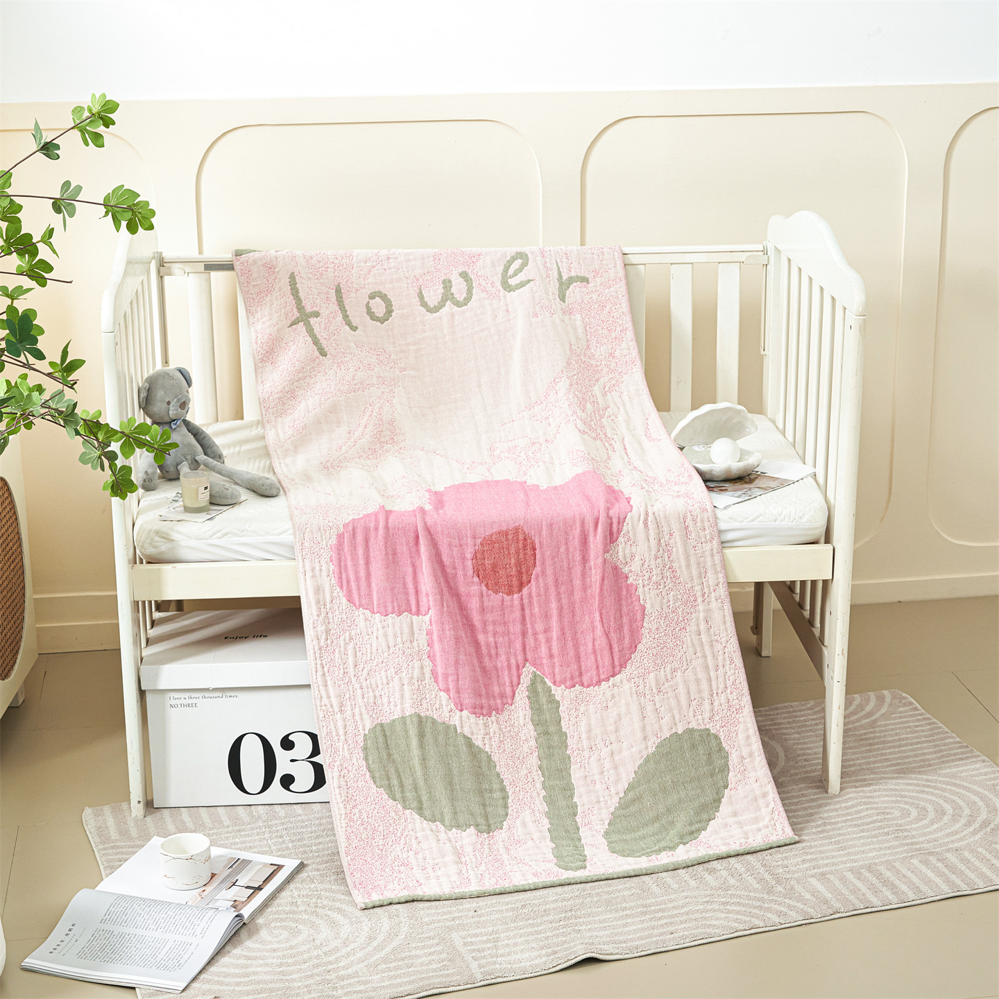 - 2025新款A类四层色织全棉提花四层水洗浴巾 花梦