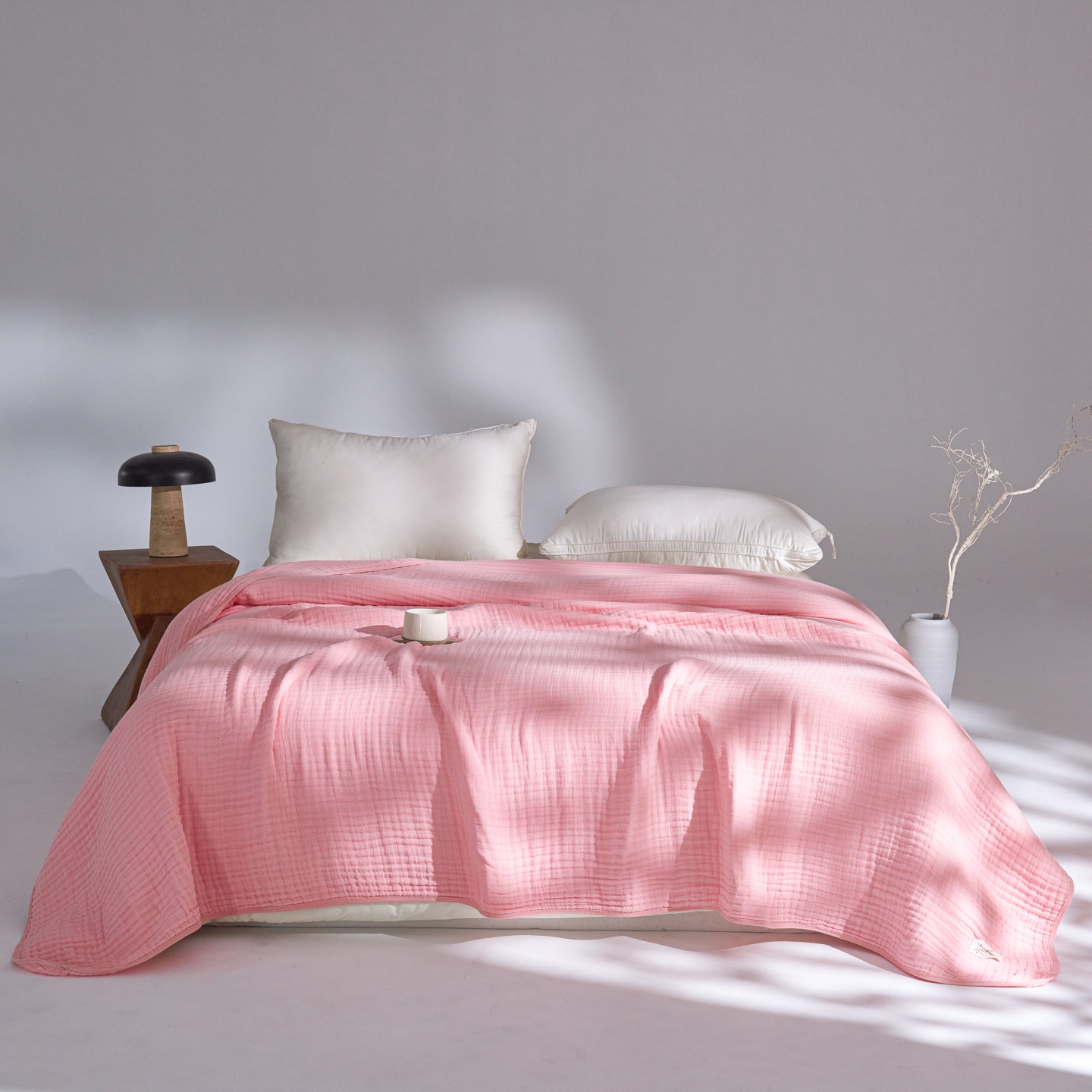 - 2025新款色织全棉芭蕉叶毛巾被 芭蕉叶粉色