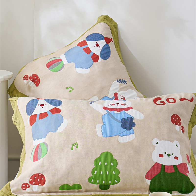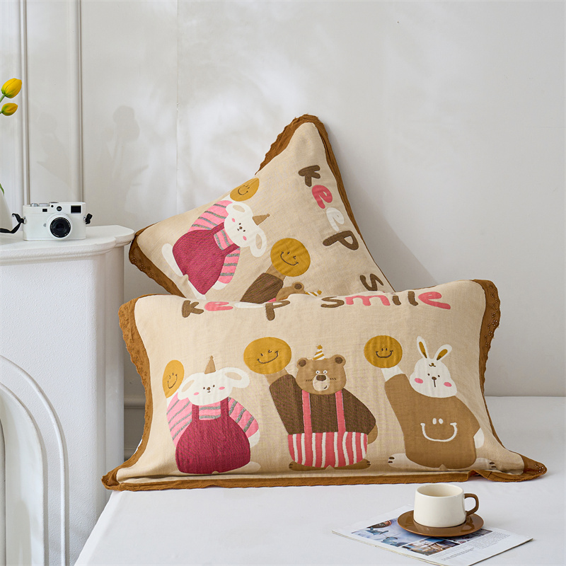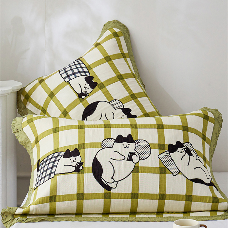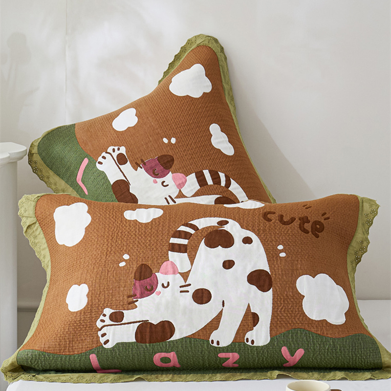 - 2024秋冬新品全棉按扣四层纱布枕套 可爱小猫