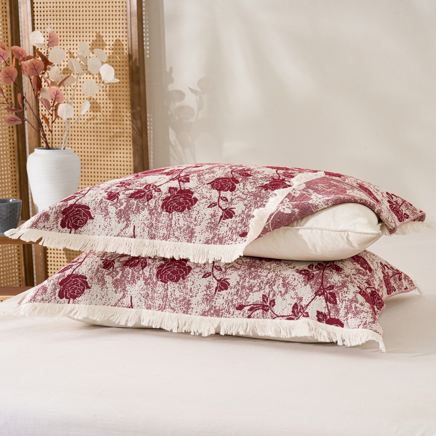 - 2025新款全棉流苏纱布毯 爱叶-酒红