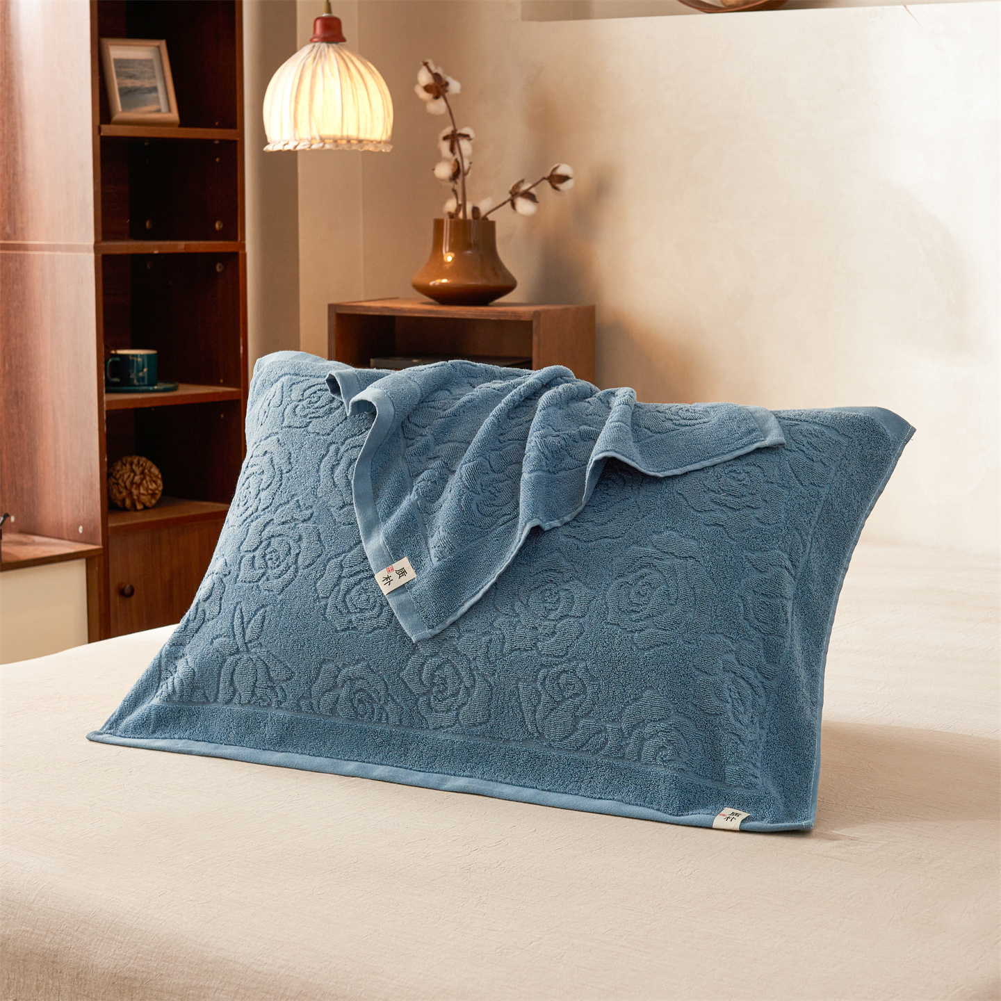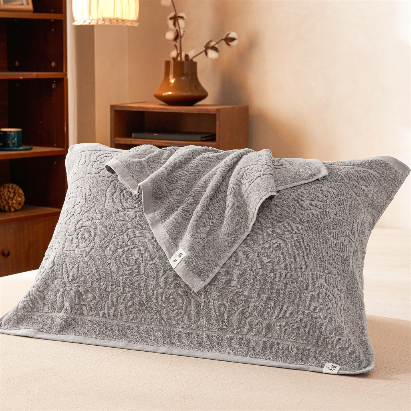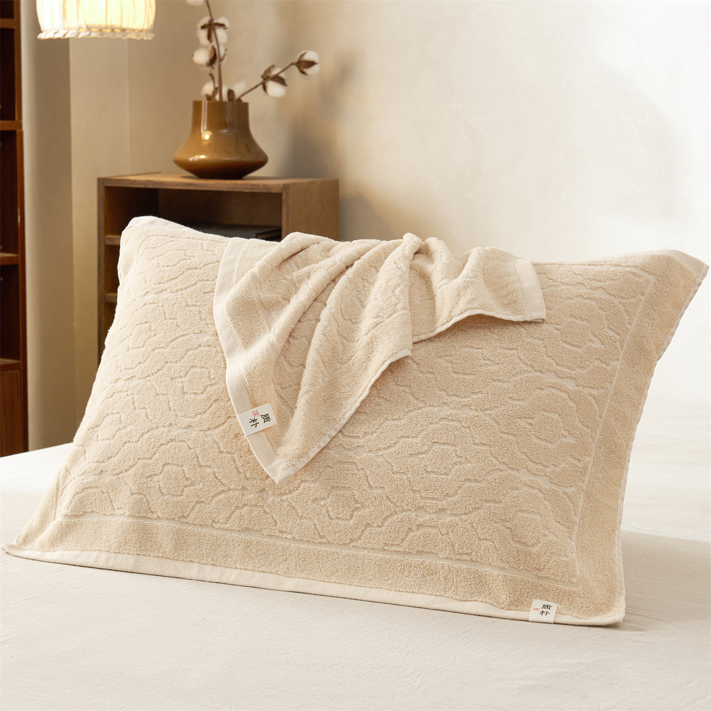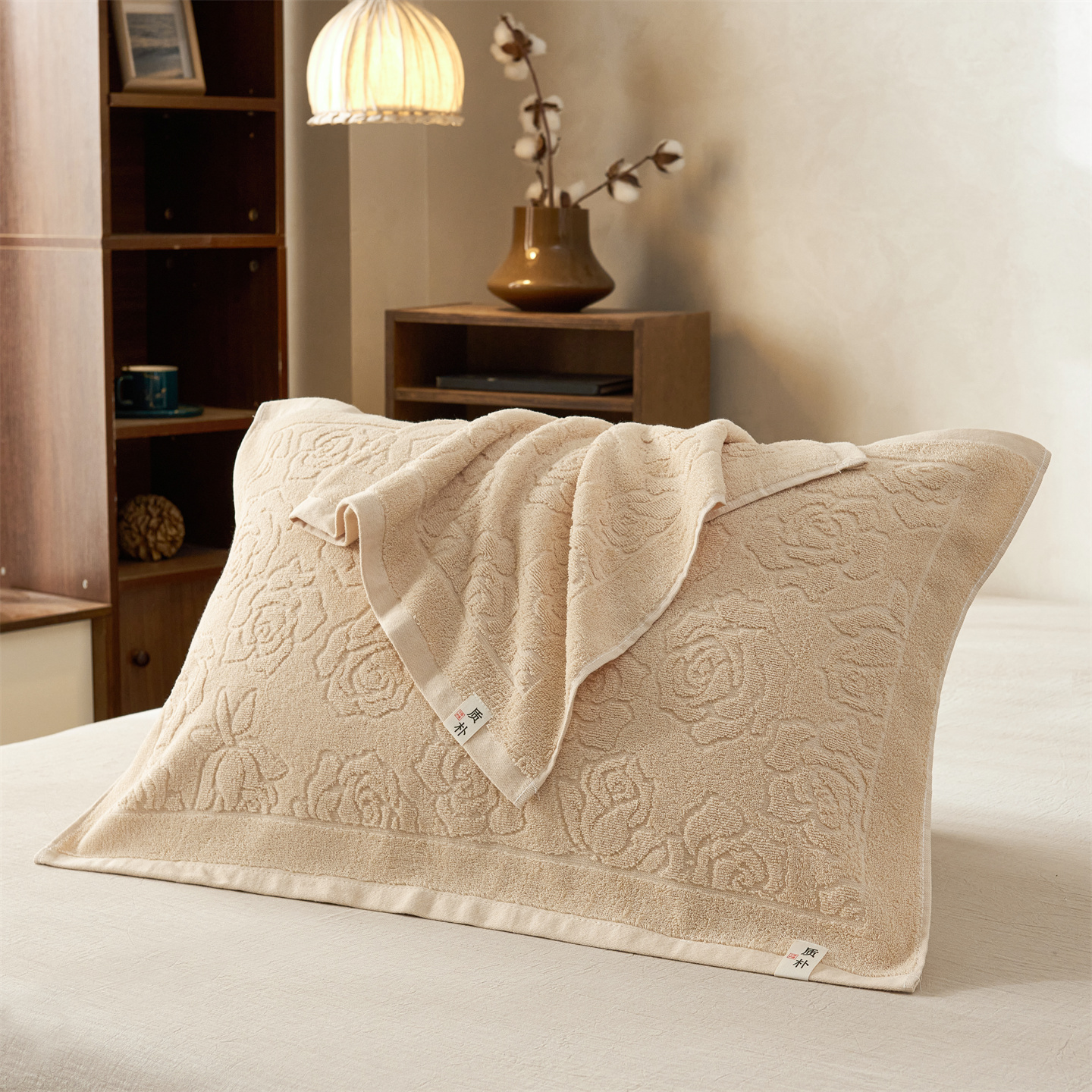 - 2025新款全棉螺旋提花复古毛圈枕巾 花语-粉