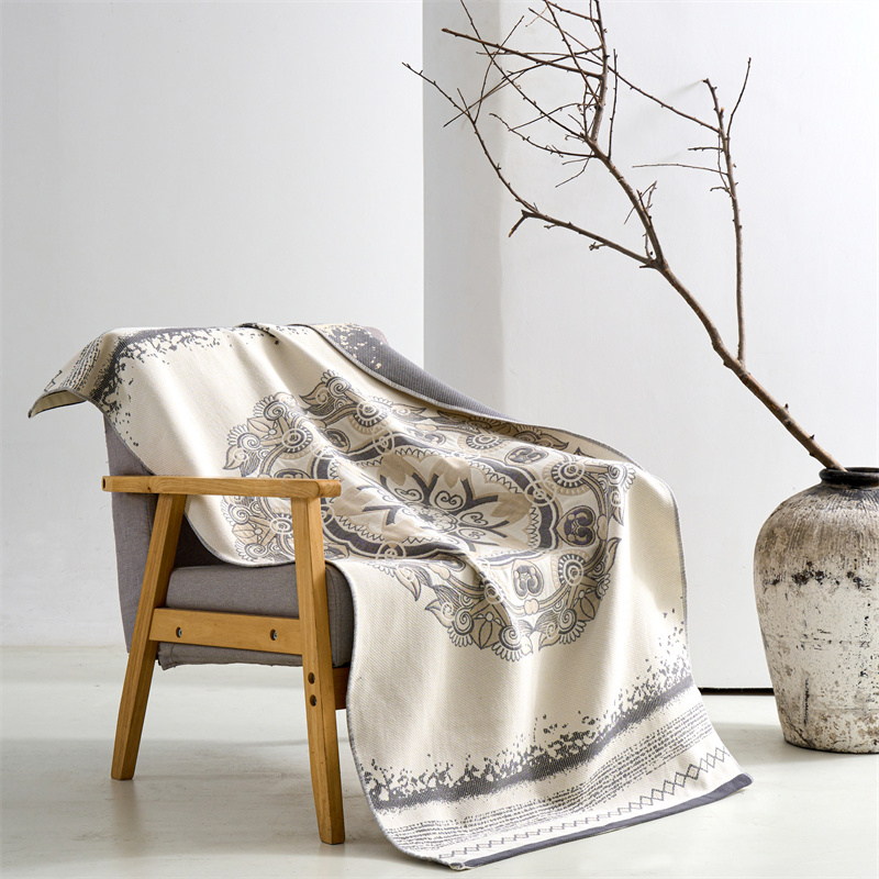 - 2025新款亚麻多功能毯盖毯-风格二 浅灰