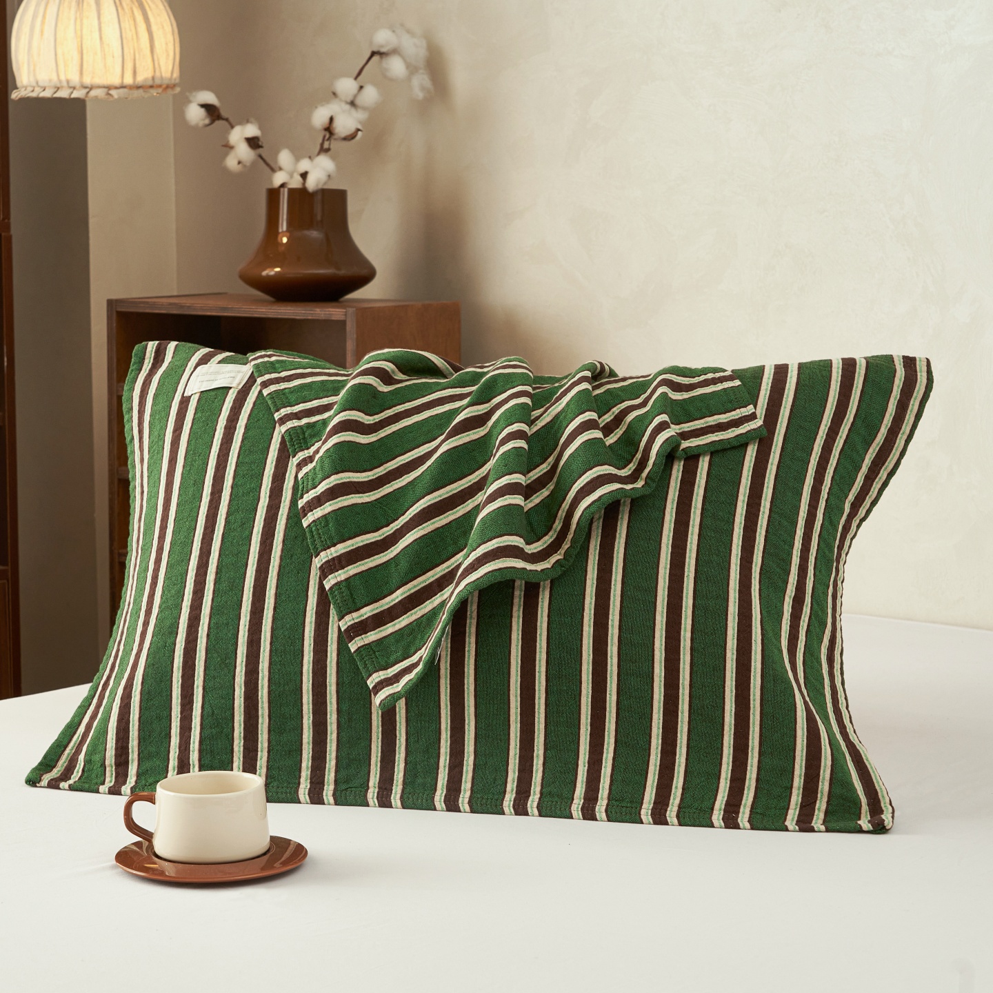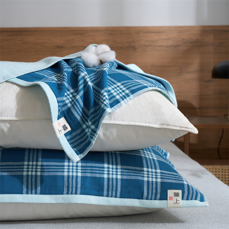 - 2025新款A类全棉三层色织提花纱布日系纱布枕巾 彩条纹蓝