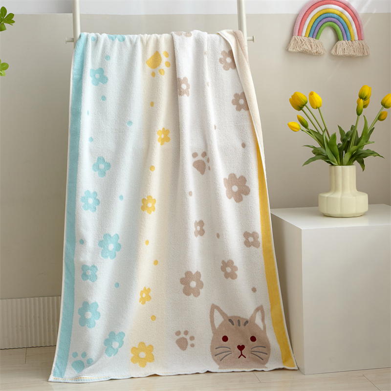 - 2024秋冬新品全棉四层水洗浴巾80*160cm 大脸猫