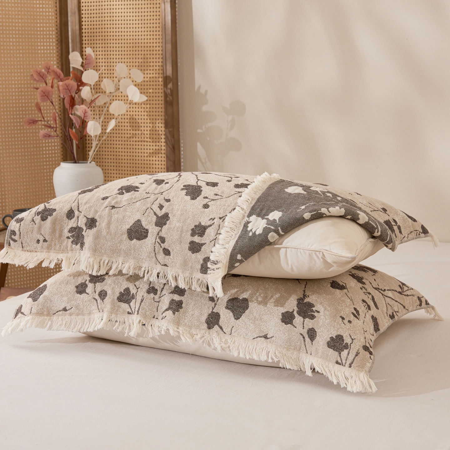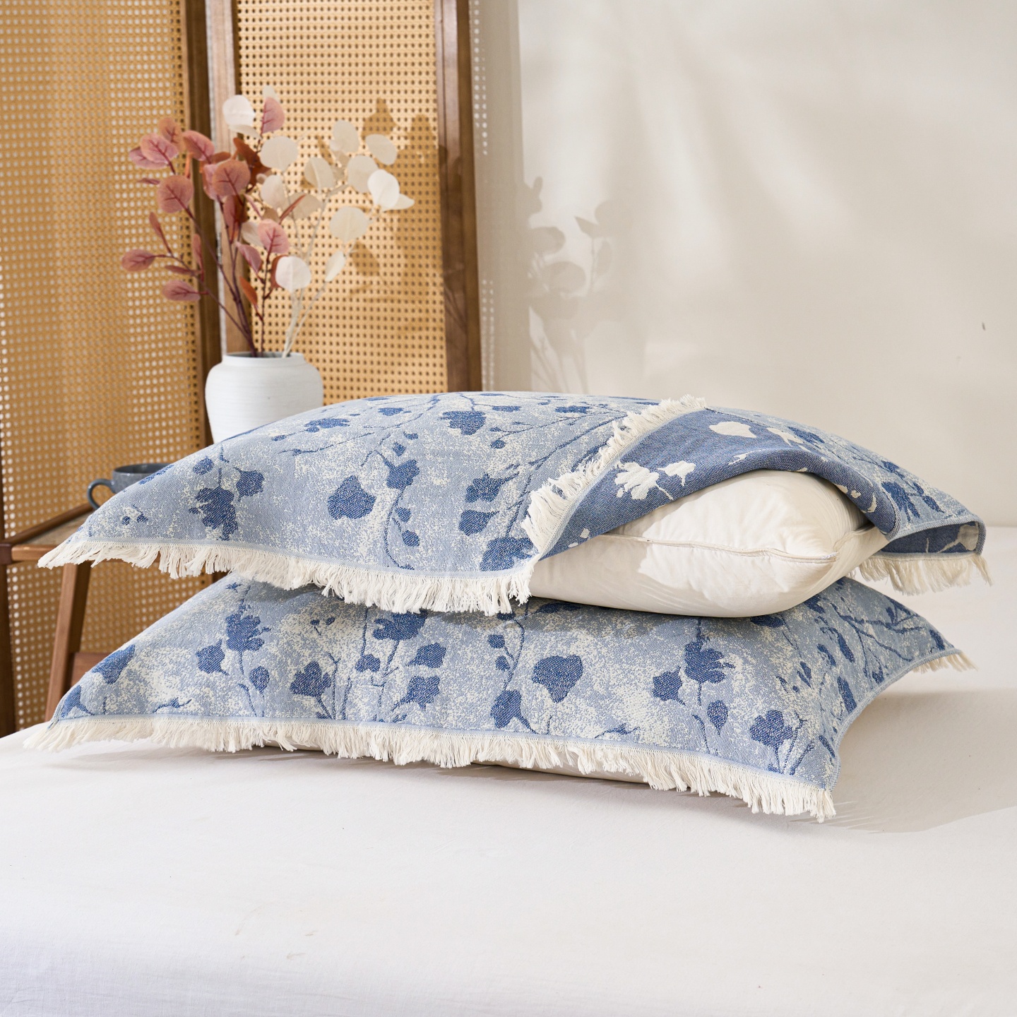 - 2025新款A类全棉三层提花流苏纱布三层流苏枕巾 风铃草