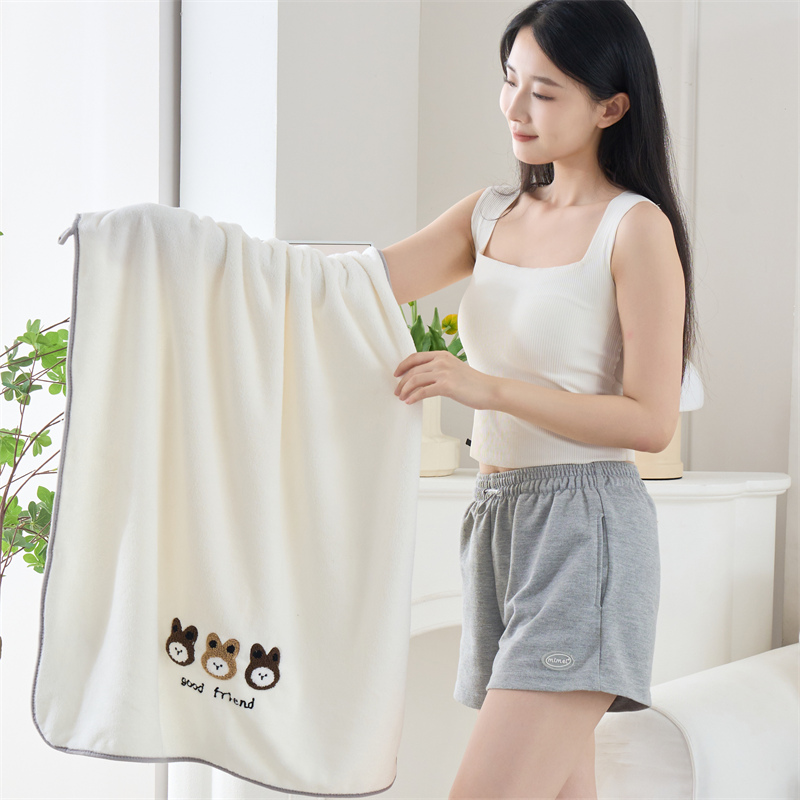 - 2025新品珊瑚绒居家系列-三只小熊套巾 毛巾白