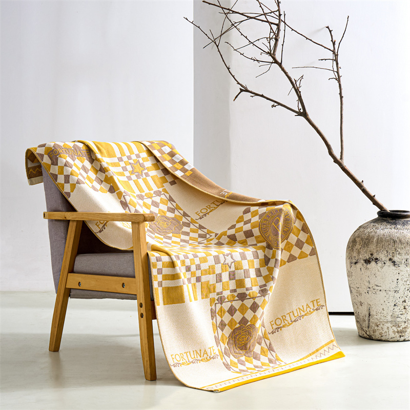 - 2024秋冬新品全棉波西米亚浴巾70*140cm 方格四叶草黄