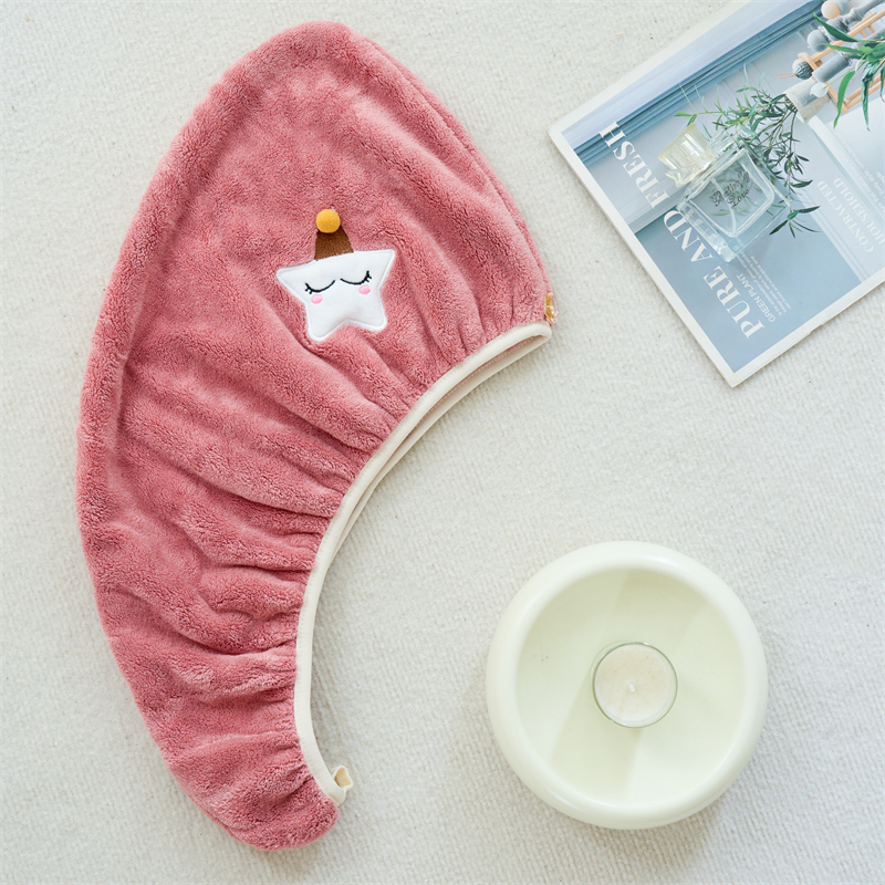 - 2024秋冬新品珊瑚绒居家系列-贴布绣干发帽 小兔子浴帽粉